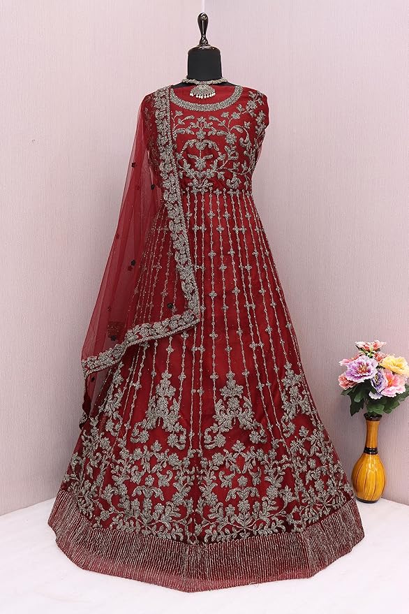- Top: Heavy Butterfly Net With Embroidery Cording Work With Glitter Sequence With Back Side Work, Size: Max Up To 48″, Length: Max Up to 60″, Type: Semi Stitched