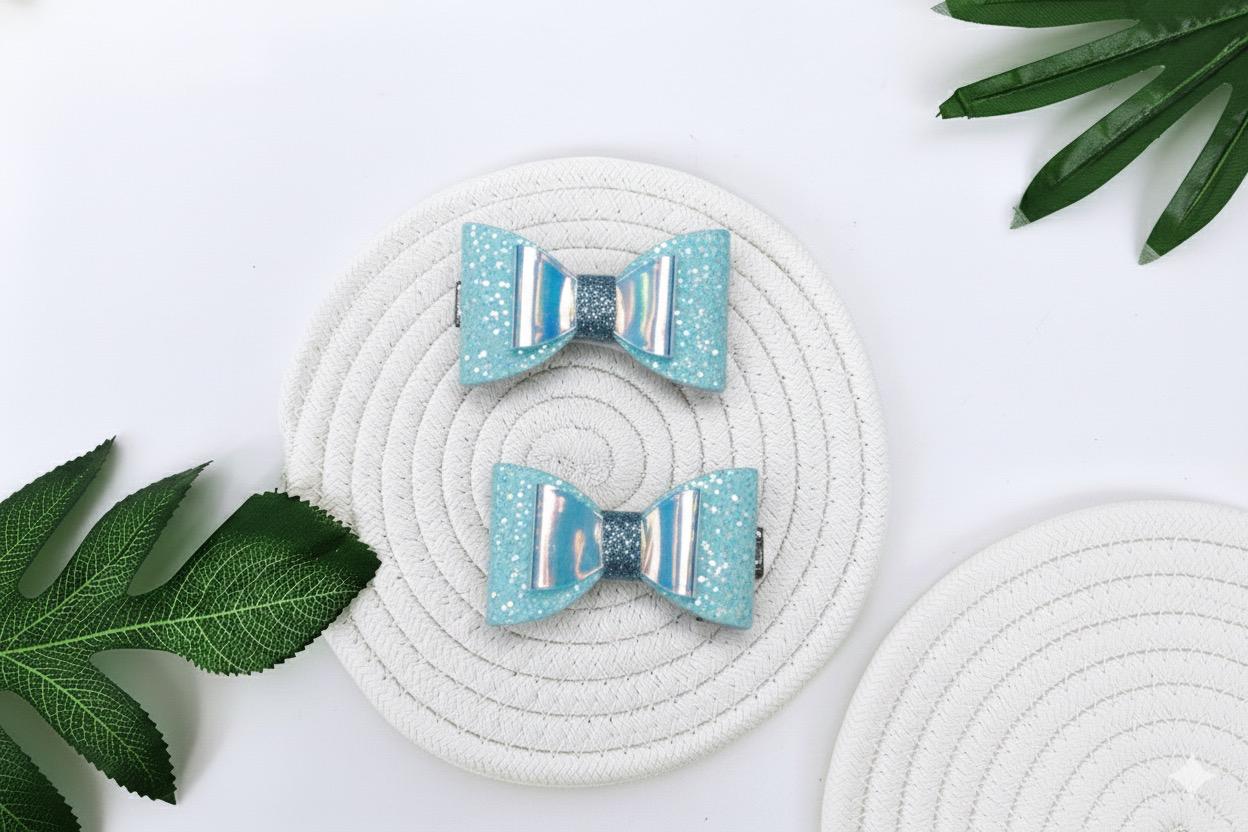 * Beautiful sky blue bow hair clips with a brilliant glitter finish.