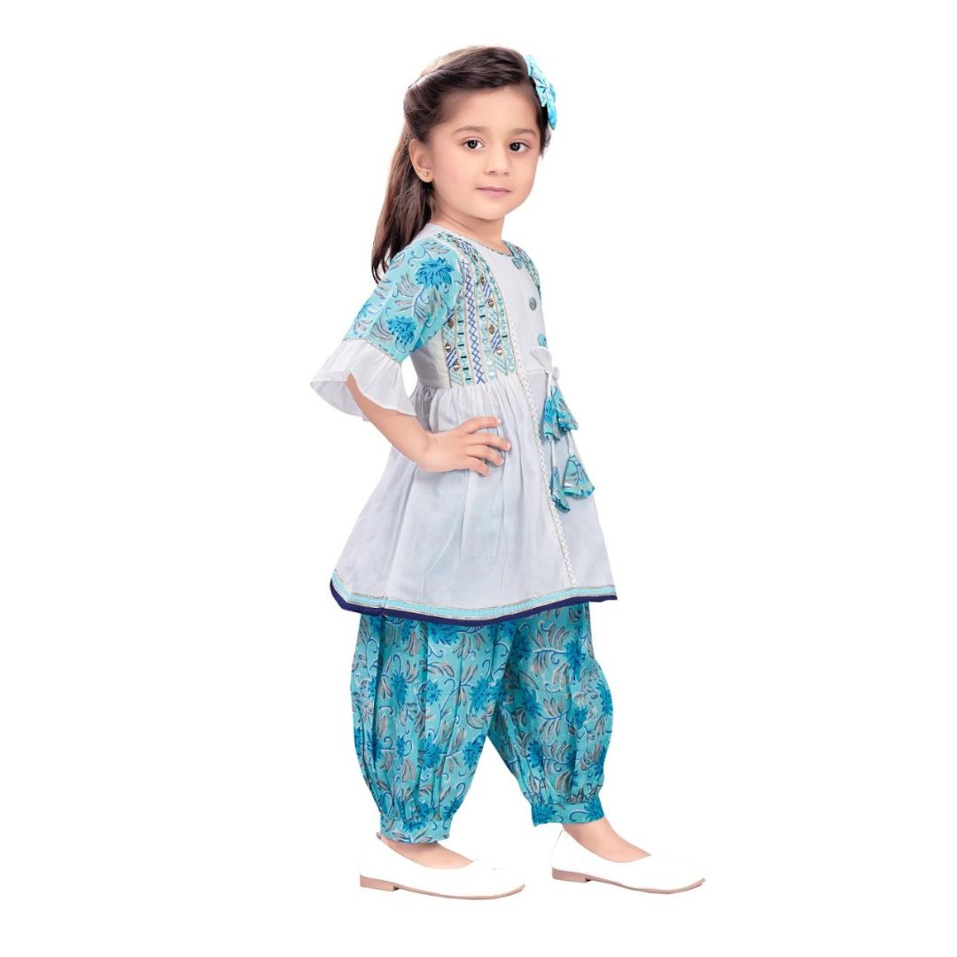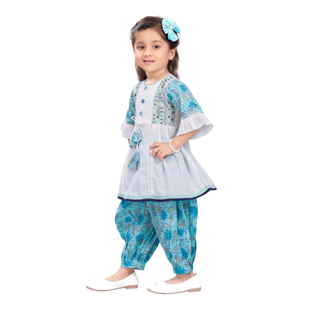 | • Two-piece ethnic set: Peplum Top & Pathani Bottom • Tabala neckline with machine embroidery • Stylish peplum flare for a graceful look • Comfortable Pathani-style bottom • Neatly finished sleeves with coordinated print detailing • Soft, breathable & skin-friendly fabric • Ideal for festive wear, casual outings & celebrations • Easy to wash and maintain |