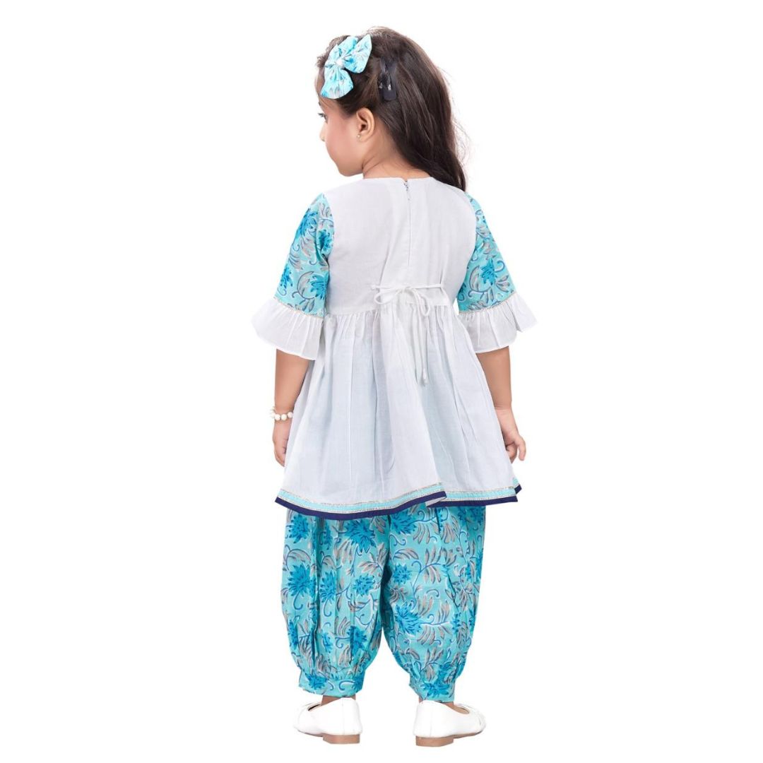 White and blue floral peplum top with pathani bottom set